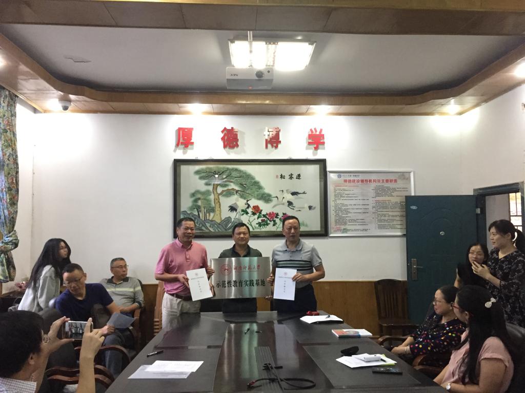 (通讯员 孙树 丁敏)9月18日上午,我院赴中南大学第一附属中学实习队与校方顺利会面。校方于会议厅召开了实习生见面会暨示范性教育师范基地授牌仪式。本次会议由中南大学附属中学教务处徐鸽老师主持,中南附属中学校长王犁、副校长陈道谦、德育主任肖立军、我院副院长岳凯华、实习指导老师贺福凌出席,我院实习队全体成员参与。