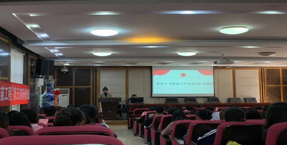 大会在庄严的国歌声中拉开序幕,主持人宣读《候选人产生办法》《大会选举办法(草案)》,通过监票人名单,宣布计票人名单,33位候选人依次上台进行自我介绍,发表竞选宣言。接着,刘阳和陈鑫鑫分别代表第二十一届研究生委员会和团总支部委员会对过去一年的工作进行了总结与回顾,并对接下来研两会的工作进行了设想和展望。