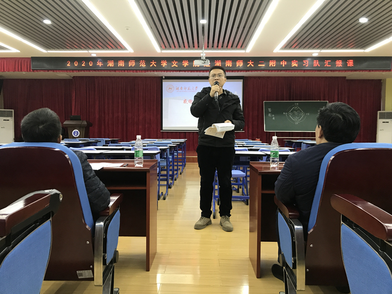 (通讯员:陈鉴茹 林晨昕 郑莹)11月26日上午,我院17级赴湖南师大二附中实习队于湖南师大二附中里仁楼8层多媒体教室开展实习教师汇报课活动。实习教师代表孙庆耀做汇报课展示,英国上市官网365副院长彭万福、中文系副主任刘光成、带队老师胡海义、二附中副校长谢旭华、语文教研组长肖和汉等领导出席,实习队全体成员参与。
