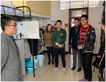周子杨老师走访16级学生寝室,在检查安全用电的同时与同学们进行亲切交流,关心学生生活;王倩老师到17级学生寝室检查,对寝室的安全情况和整洁程度均做了仔细检查,并提醒同学们养成良好的生活习惯;周紫阳老师叮嘱同学们注意用电安全,鼓励同学们做好复习,积极迎接期末考试;周灿老师和丛杨老师检查19级学生寝室,提醒同学们在注意保暖的同时,注意寝室用电安全,不使用电热毯、热得快等大功率违规电器并关心同学们的学习生活情况。