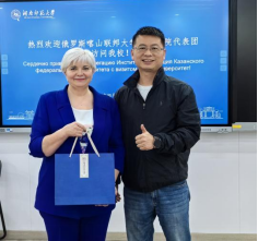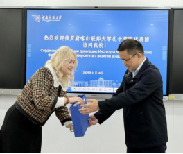 仪式最后,双方互赠纪念礼品,并合影留念。塔赫塔罗娃女士一行还看望了正在我院学习的喀山孔院学生代表,询问了他们的学习和生活情况。本次访问进一步增强了我院与喀山孔院的合作关系,国际中文教育联合办学项目已基本落地,蓄势待发。该项目正式签约后,将成为我校首个境外办学项目,标志着两校合作进入新的阶段。